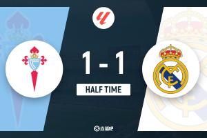体育资讯3月7日讯 北京时间3月7日凌晨4时整,2025-26赛季西甲第27轮在巴拉伊多斯市政球场展开角逐,皇家马德里客场对阵塞尔塔。上半场琼阿梅尼联赛首球,居莱尔助攻,伊格莱西亚斯扳平,阿诺德边路防守被爆,皇马客场暂时1-1战平塞尔塔。