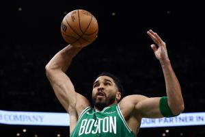 本场比赛,塔图姆出战27分钟,前6投全丢,但此后顶级调整连进四球连得9分,全场他16中6拿到15分12篮板7助攻1抢断,正负值+20!