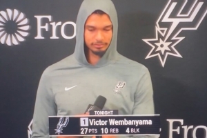 赛后文班接受采访,他感叹道:“这是我篮球生涯中打过最好的比赛之一,也绝对是我篮球生涯中最棒的30个小时,肯定的。”