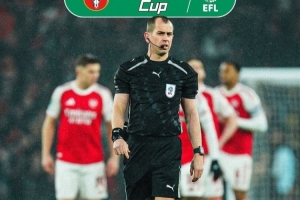 体育资讯3月11日讯 北京时间3月23日凌晨,阿森纳与曼城将在联赛杯决赛中展开较量,本场比赛裁判组出炉。