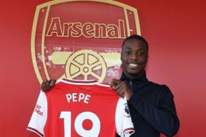 现年30岁的尼古拉·佩佩效力比利亚雷亚尔,他在23岁时效力法甲里尔,打出生涯巅峰数据41场23球13助。那一年(2019),阿森纳花费8000万欧引进了这位里尔头牌,打破球队队史引援纪录,直到2023年才被赖斯刷新。