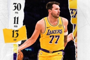 赛后,湖人官方晒出东契奇的数据海报,配文写道:“三双,外加绝杀!东契奇,今晚属于你!🌟”