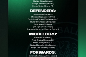 尼日利亚大名单:卢克曼、伊沃比、恩迪迪入选,奥斯梅恩缺席