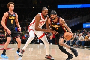 火箭本赛季至今战绩为41胜27负,场均得113.8分,场均失110分。上场比赛,火箭主场116-124再次不敌湖人,申京27分4篮板10助攻,阿门·汤普森26分11篮板4助攻,杜兰特18分6篮板4助攻,小贾巴里·史密斯18分5篮板4助攻。本赛季火箭主场战绩23胜10负。进入3月份以来,火箭战绩4胜6负。火箭问题依旧突出,年事已高的杜兰特虽然威胁性依然在线,但传控支配球并非其所长。申京作为主控,防守存在明显漏洞。而在杜兰特遭遇包夹时,其他球员们也不能给予球队充分的支持。从往绩看,含季前赛在内火箭面对老鹰近期5连胜。本场火箭不能出场依然是范弗里特、亚当斯和杰肖恩·泰特三名老伤员。