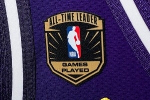 詹姆斯在昨日比赛中的球衣附带了“历史出场王”特制补丁,球鞋鞋跟处也附有“1612”的纪念字样。