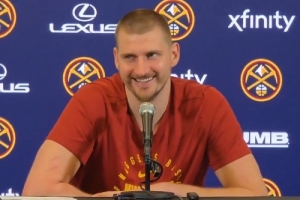 赛后,约基奇接受采访,谈到凯特琳·克拉克赛前说自己是世界上最好的球员,约基奇笑着说:“我们有同一个经纪人,这就是她这么说的原因。”
