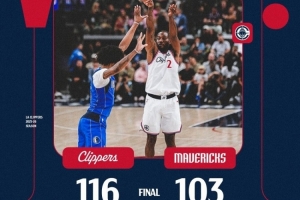 体育资讯4月8日讯 NBA常规赛,快船116-103击败独行侠。