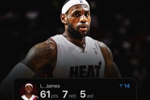 61分至今也是詹姆斯生涯的单场最高分,也是热火队史单场最高分。