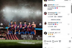 本场比赛拉菲尼亚首发登场,点射命中。他也在个人社媒晒出球队赛前合照,配文写道:“为我们团队表现感到自豪,我们是大家庭!”
