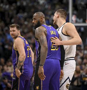 湖人同理,也放空布劳恩和布朗,给约基奇和穆雷挡拆上人海战术。即双方都通过夹击王牌赌角色球员三分,比赛进入白热化